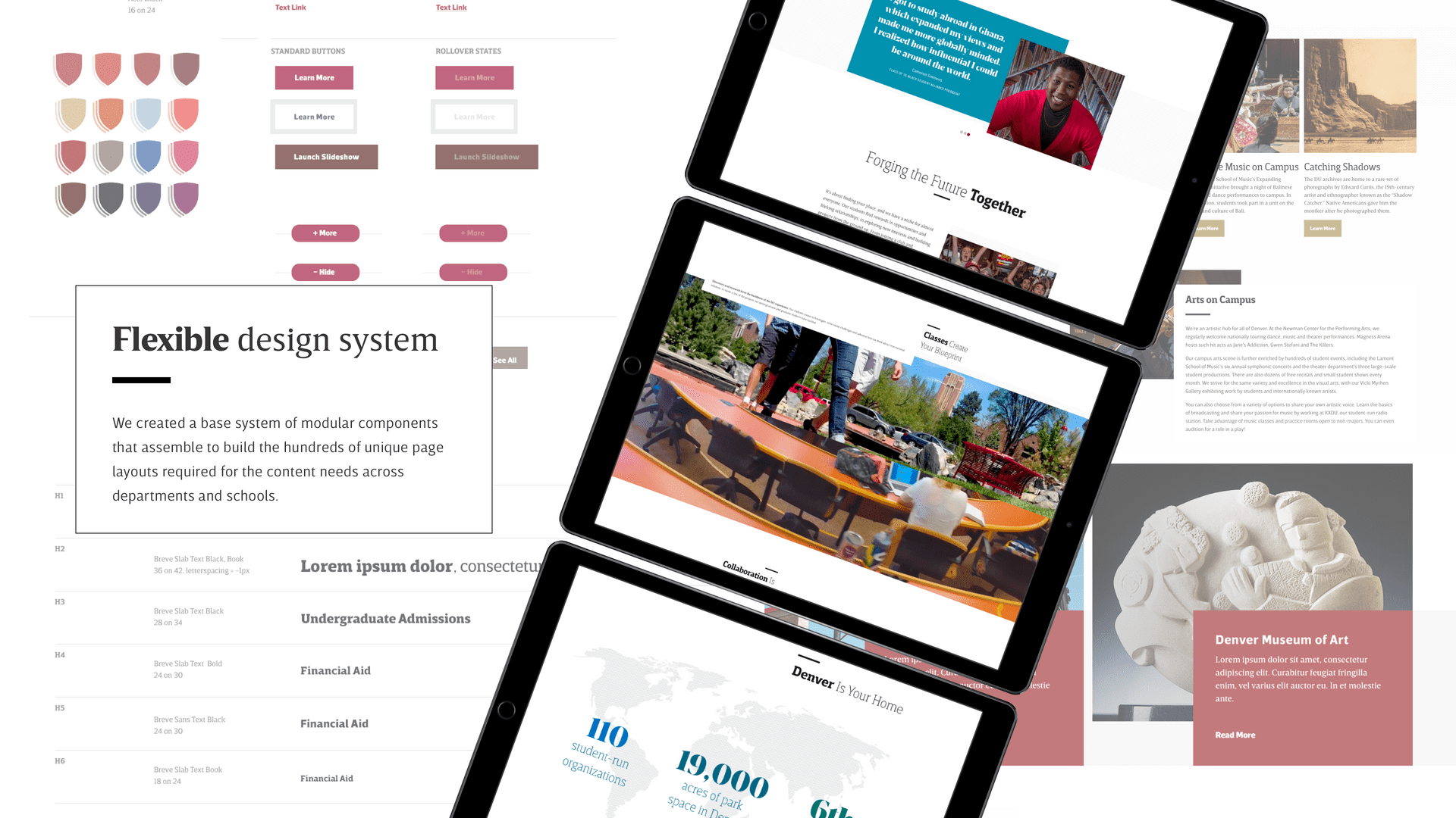 I joined the team from A Hundred Years as Design Lead for the Detailed Design Phase of the redesign of The University of Denver’s web platform. We combined the findings from UX research studies, personas, and user journey workshops to create a personalized and accesible content hub that embodied the purpose driven and adventurous spirit of Denver and D.U.'s students and staff.