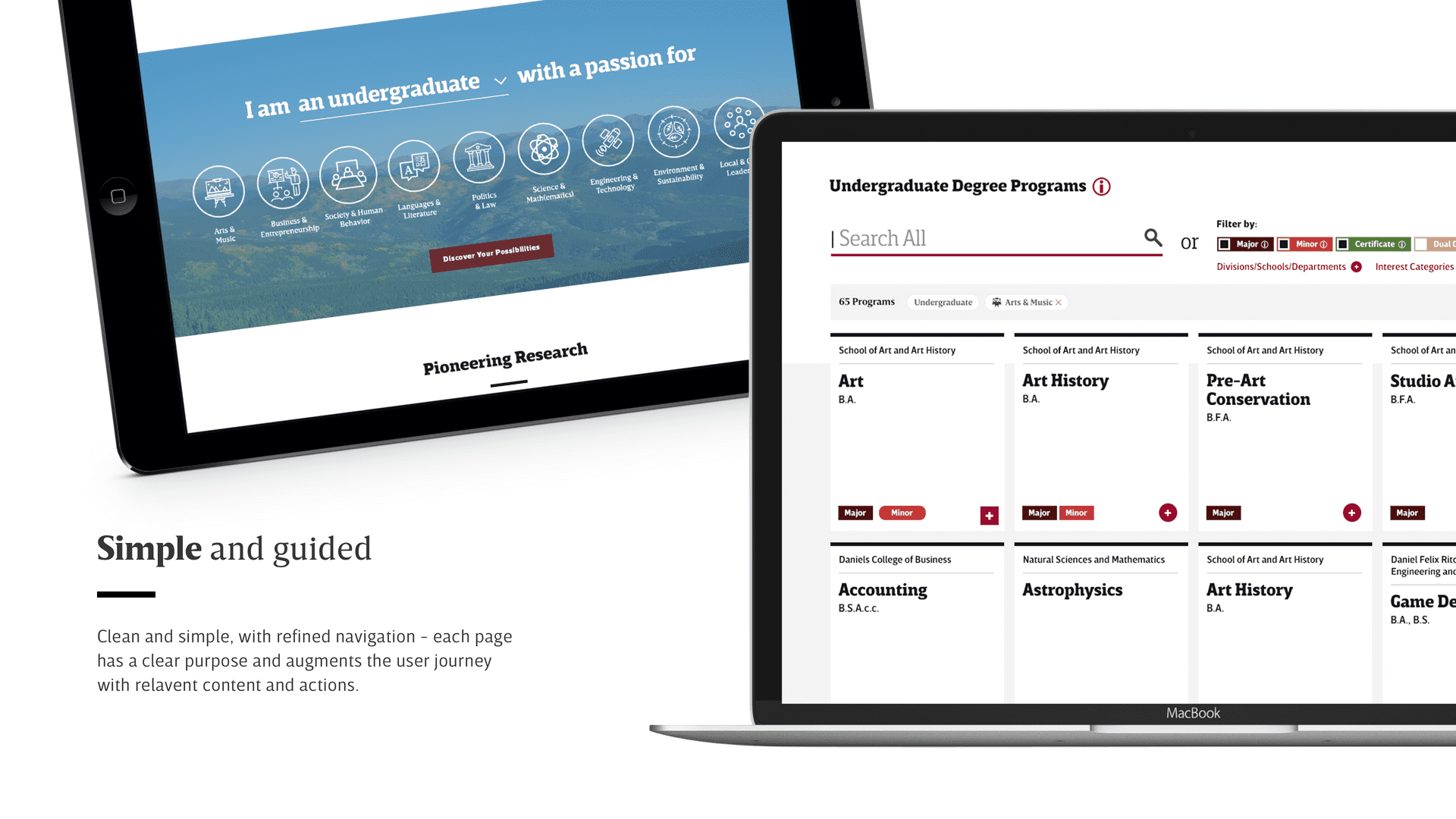 I lead the Design efforts on an Agile team and presented Design deliverables to the DU team. We wireframed templates for key DU student segments and extrapolated them into a modular component based design system and CMS that enables department S.M.E.s to easily create and manage content.