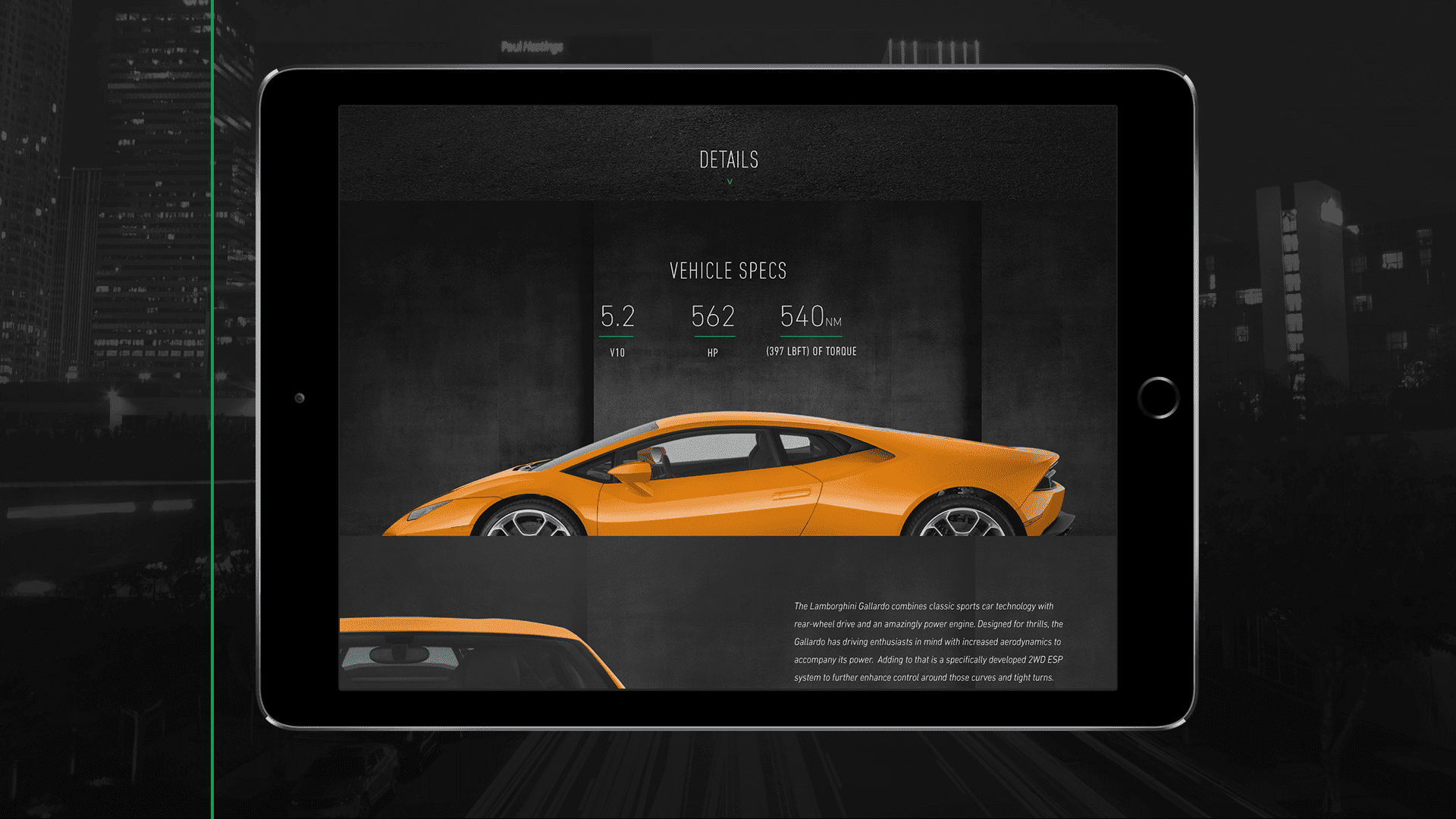 that aimed to create an understated and elegant backdrop to the beautiful vehicle imagery. This project had a quick turnaround and I was involved at all stages. I participated in the strategic conversations, gathered business requirements, collaborated on UX/wireframing, created the design direction, oversaw production designers and even did some CSS coding during QA.